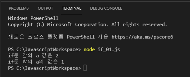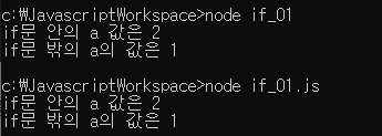 console.log('if문 안의 a 값은 ' + a);
