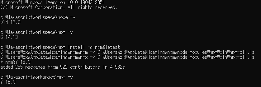 최신버전 npm 설치는