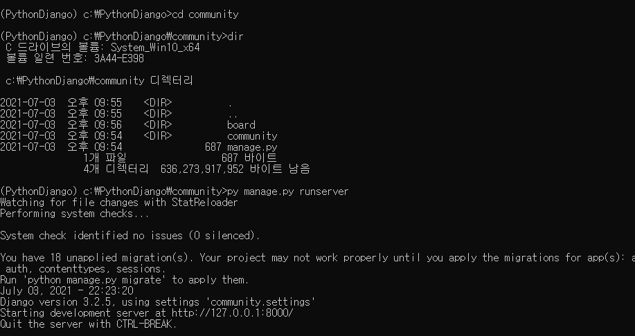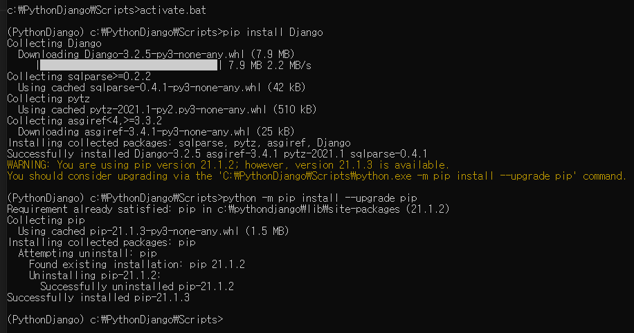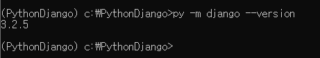 장고 모듈이 제대로 설치되었는지 여부는 py -m django --version