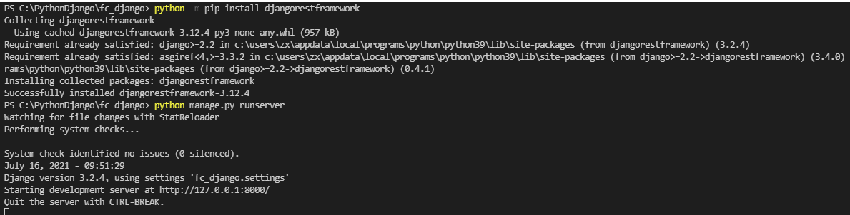 python -m pip install djangorestframework