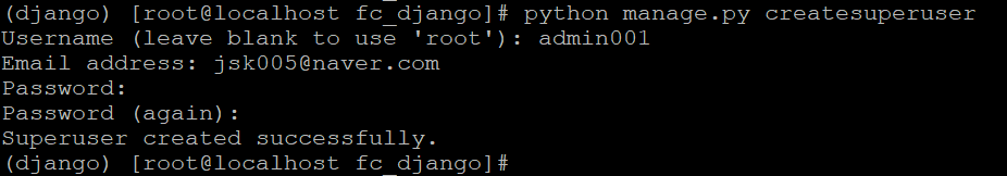 관리자 ID는 원하는 아이디로 지정하면 된다.