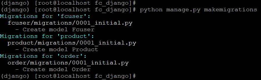 순서로 명령어를 입력하면 프로젝트 및 앱이 생성된다.