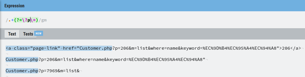 <a class="page-link" href="Customer.php?p=1&m=list&where=name&keyword=%EC%9D%B4%EC%95%A4%EC%94%A8&">1</a>