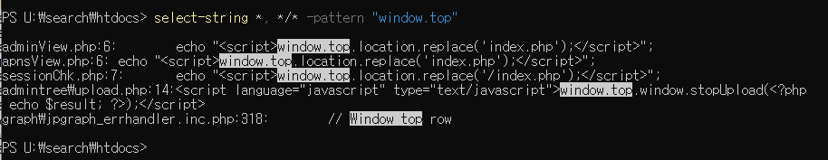 현재 폴더에서 원하는 내용(window.top)이 들어있는 걸 찾는다.