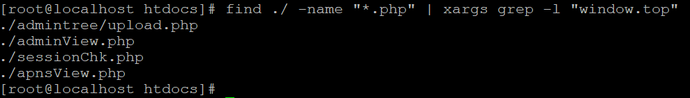 find ./ -name "*.php" | xargs grep -l "window.top"