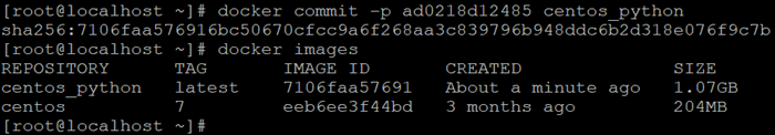 docker commit -p ad0218d12485 centos_python