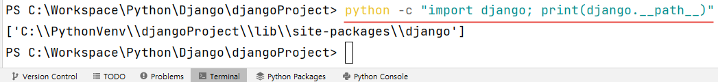 장고 가상환경 설정 디렉토리 하단에 설치된 것을 확인할 수 있다.