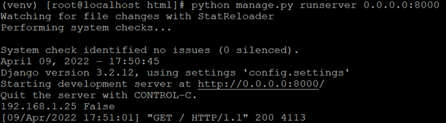 python manage.py runserver 0.0.0.0:8000