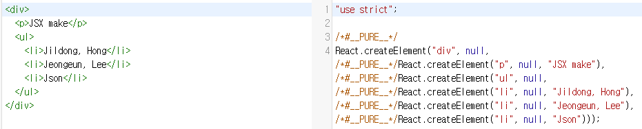 자동으로 React.createElement 를 생성해주는 걸 확인할 수 있다.
