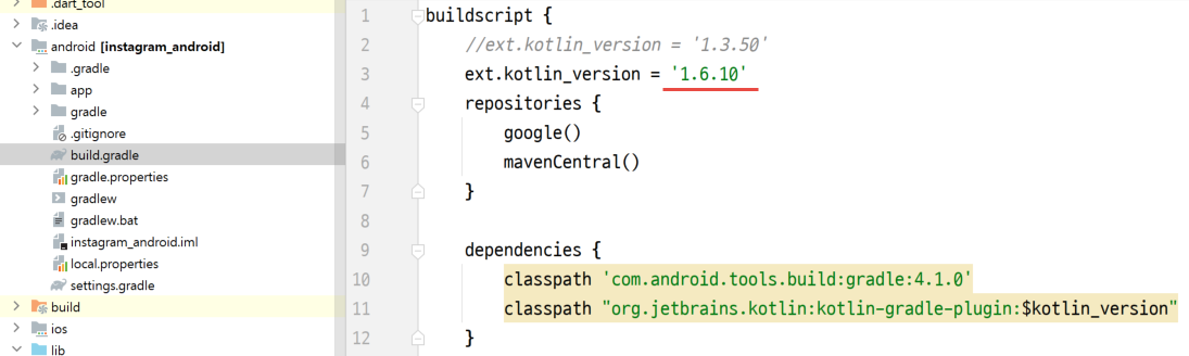 기본적으로 설치되는 앱은 코틀린 버전이 낮게 설정되어 있다.