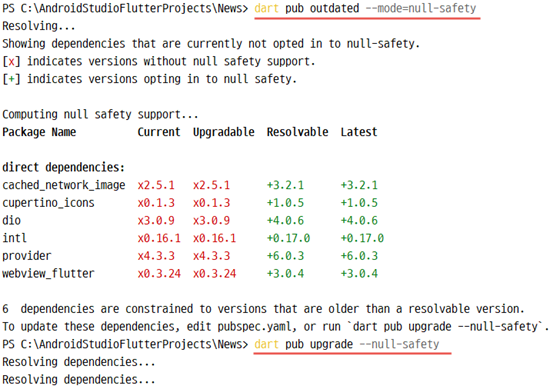 Null Safety 지원 확인 및 dependencies: 자동 업데이트