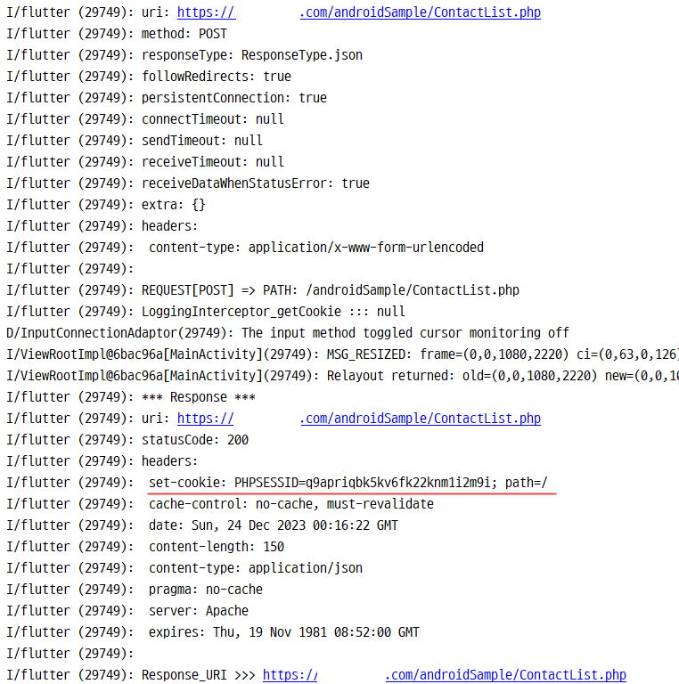 로그를 보면 loginChk.php 파일에서 set-cookie 값이 넘어온 값과 ContactList.php 에서 넘어온 set-cookie 값이 서로 다르다는 걸 확인할 수 있다.
