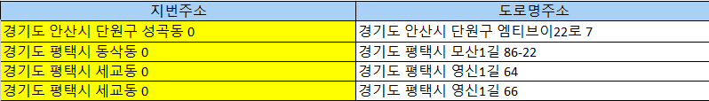 대부분은 지번주소가 존재하는데 신규로 생성되는 도로명주소에 해당하는 지번주소가 없는 것이다.