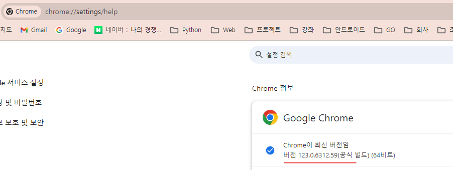 chrome://settings/help 를 크롬 브라우저에서 실행하여 현재 버전을 찾아야 한다.