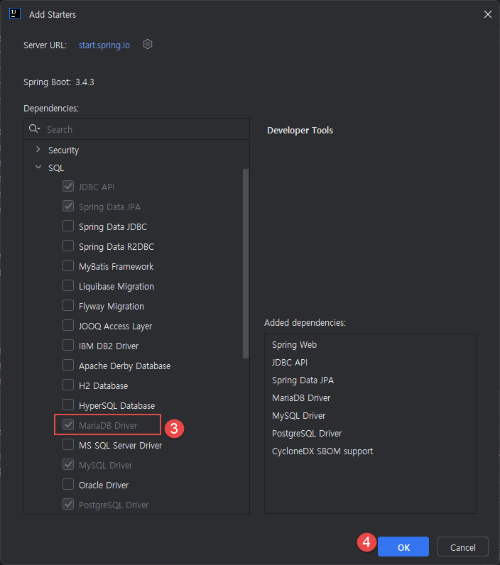 처음부터 MariaDB Driver를 선택해야 하는데 실수한 것이라는 걸 뒤늦게 알았다.