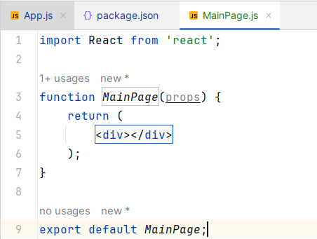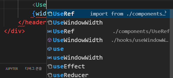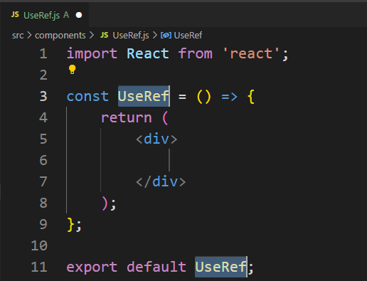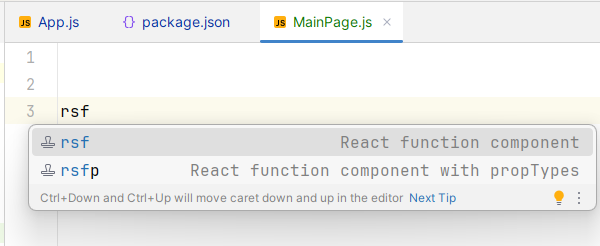 rsf 를 입력하고 엔터키를 치면 함수형 컴포넌트가 자동완성된다.