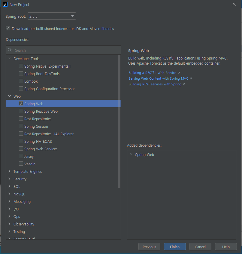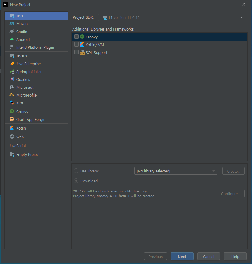 인텔리제이(IntelliJ IDEA)에서 스프링 프레임워크(Spring Framework) 프로젝트를 생성하는 과정이다.